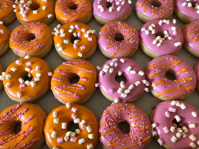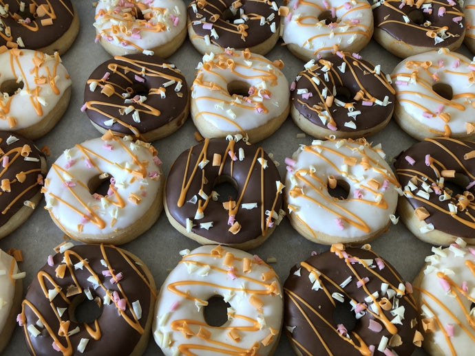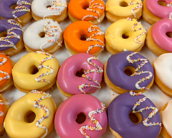 deze maat donuts worden vooral besteld voor kinderfeestjes, schooltraktaties, zakelijke events. Een assortiment van perfect gebakken donuts. Geniet van de middelgrote traktatie, elke donut met een diameter van 6,5 cm, die elke hap onvergetelijk maakt. Duik in een verscheidenheid aan smaken, van klassiek tot verrassend, en ervaar de zorgvuldigheid waarmee deze donuts zijn gemaakt. De Midi Donutbox is jouw ticket naar smaakvolle momenten. Bestel vandaag nog en laat de genietende reis beginnen.