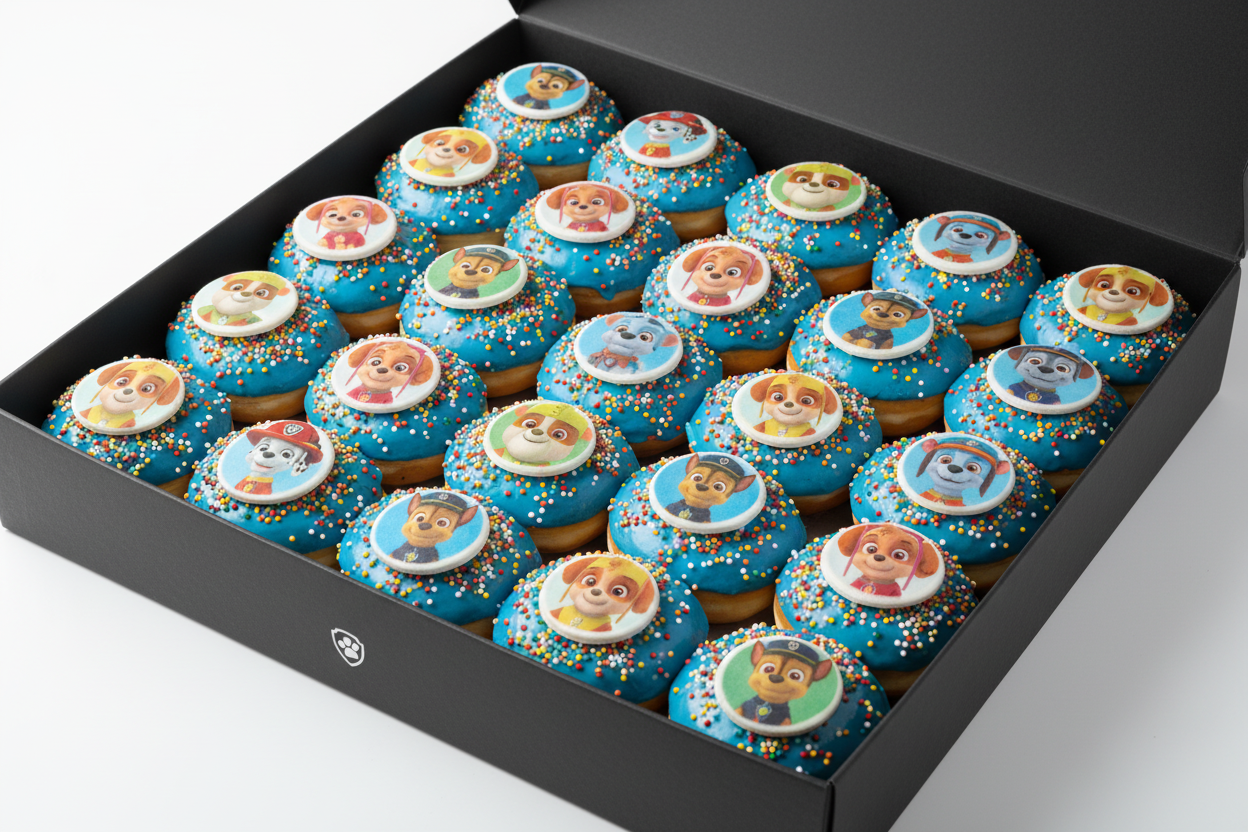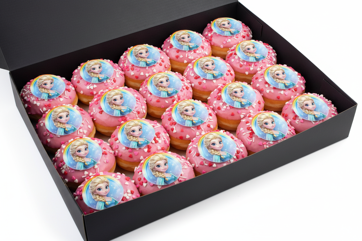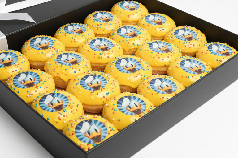 Kies uit jouw favoriete thema en geniet van een doos vol vers versierde donuts met een unieke uitstraling.
